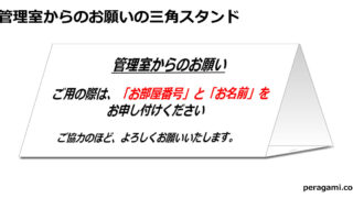 ペラガミ.comは、「立入禁止」「駐車禁止」「禁煙」「故障中」などの貼紙を提供するサイトです。フリー、無料でご利用いただけます。当サイトの貼紙は、個人・法人、商用の目的を問わずフリーで利用できます。データはすべてPDF形式です。そのまま印刷してご利用ください。