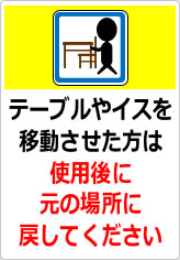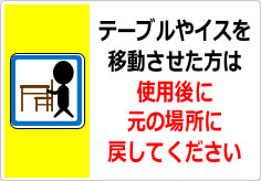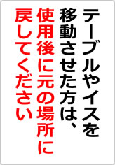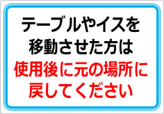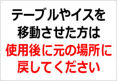 テーブルやイスを移動させた方は、使用後に元の場所に戻してくださいの貼り紙ダウンロード