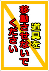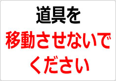 道具を移動させないでくださいの貼り紙テンプレートです。PDF版とパワーポイント版を提供しております。そのままでも、文字を編集してでもご利用いただけます。