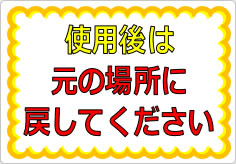 使用後は元の場所に戻してくださいの貼り紙ダウンロード