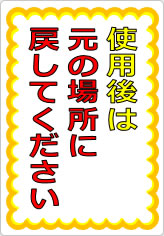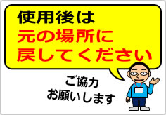 使用後は元の場所に戻してくださいの貼り紙使用例