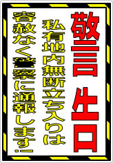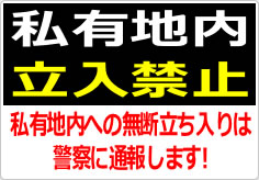 私有地内無断立ち入りへの警告の貼り紙の使用例
