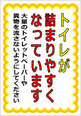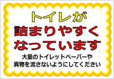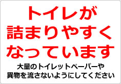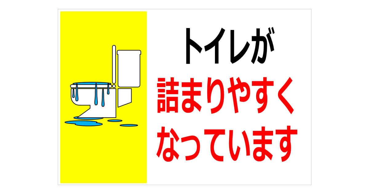 トイレが詰まりやすくなっていますの貼り紙使用例