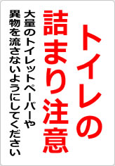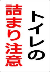 トイレの詰まり注意の貼り紙ダウンロード