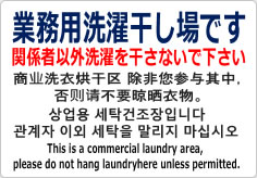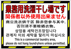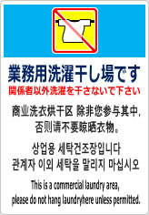 業務用洗濯干し場です/4か国語の貼り紙使用例