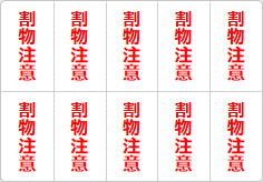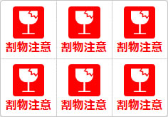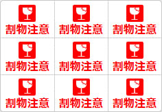「割物注意」であることを明示し、壊れやすい物品の取り扱いに注意を促すための小型の表示です。ガラス製品、陶器、食器、精密機器など、衝撃に弱い物品を梱包・保管・運搬する際に、周囲の人に対して丁寧な扱いを促す目的で使用されます。宅配便の荷物やイベントで配布するノベルティ、展示品の保護など、さまざまな場面で活用でき、破損事故の予防に役立つ実用的な素材です。