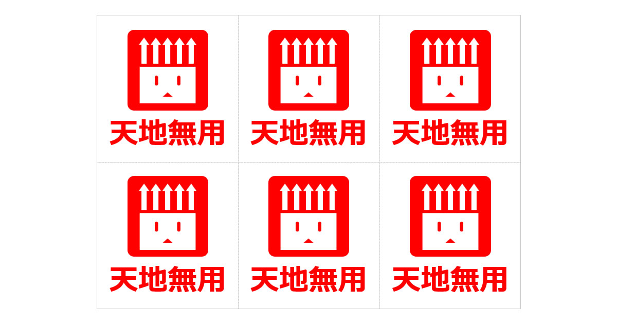 「天地無用」であることを明示し、上下の向きを逆さまにしないよう注意を促すための小型の表示です。液体入り容器、精密機器、ガラス製品など、上下の向きが重要な物品に対して、輸送中や保管時に誤って逆さまにされることを防ぐ目的で使用されます。宅配便の荷物や展示品の設置時など、向きの保持が求められる場面で活躍し、破損や漏れのリスクを軽減する実用的な素材です。