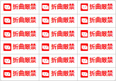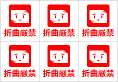 「折曲厳禁」であることを強く伝えるための小型の注意表示です。折り曲げることで破損や機能不全を起こす可能性のある重要書類、美術作品、電子部品などに対して、絶対に折り曲げないようにという強い警告を示します。特に公式文書や展示物、精密な印刷物など、形状の保持が求められる対象に対して、明確な取扱指示として活用されます。視認性が高く、誤った扱いを防ぐための実用的な素材です。