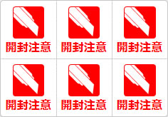 - 工場の梱包ラインで、製品傷防止のため開封注意ラベルとして使用