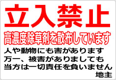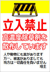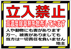 立入禁止 高濃度除草剤を散布していますの貼り紙使用例