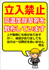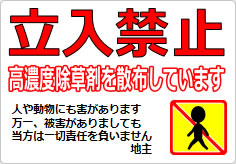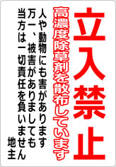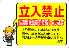 - 農地や公共緑地の入口に「立入禁止 高濃度除草剤を散布しています」として安全注意喚起