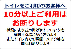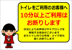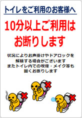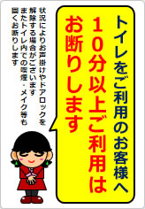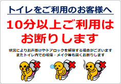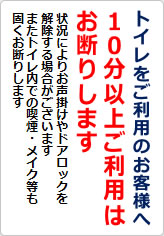トイレをご利用のお客様へ 10分以上ご利用はお断りしますの貼り紙使用例