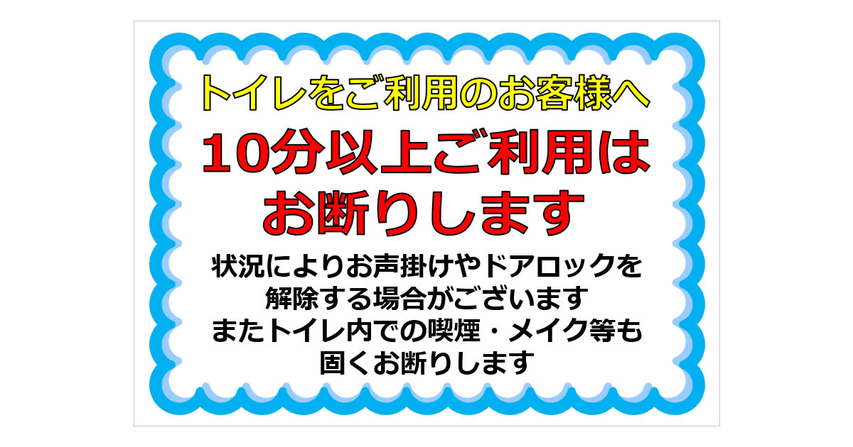 トイレをご利用のお客様へ 10分以上ご利用はお断りしますの貼り紙ダウンロード