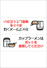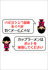 カップラーメンはポットを使用してくださいの三角スタンドです。PDF版とパワーポイント版を提供しております。そのままでも、文字を編集してでもご利用いただけます。