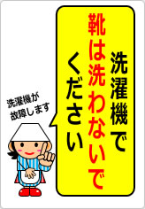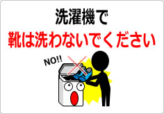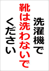 洗濯機で靴は洗わないように注意を促す貼り紙です。