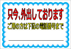 只今、外出しております。ご用の方は下記の電話番号までの貼り紙