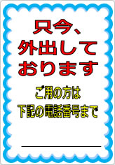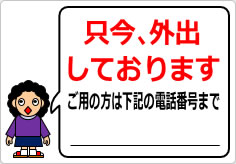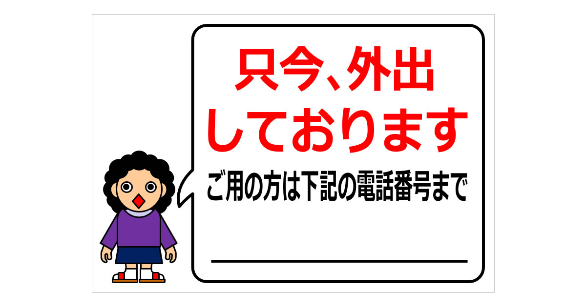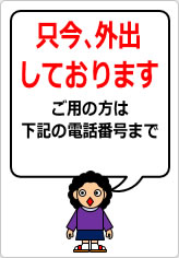 只今、外出しております。ご用の方は下記の電話番号までの貼り紙ダウンロード