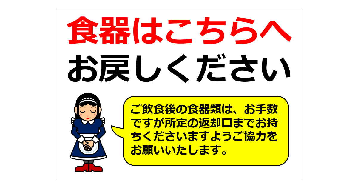 食器はこちらへお戻しくださいの貼り紙ダウンロード