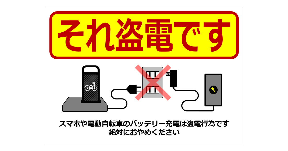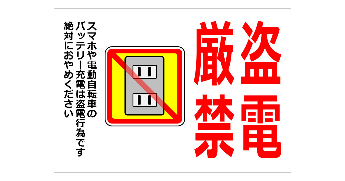 - 共用の電源コンセント付近に掲示して不正な電源使用を防止する