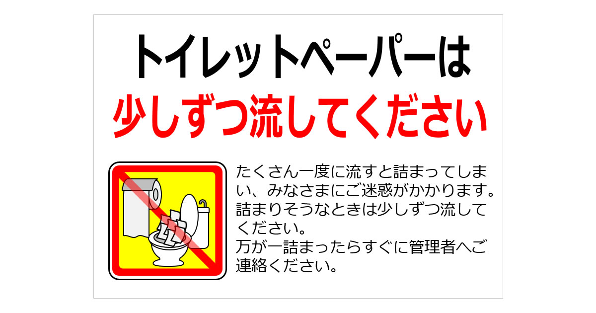 トイレットペーパーは少しずつ流してください(PDF版)の貼り紙をまとめてダウンロード