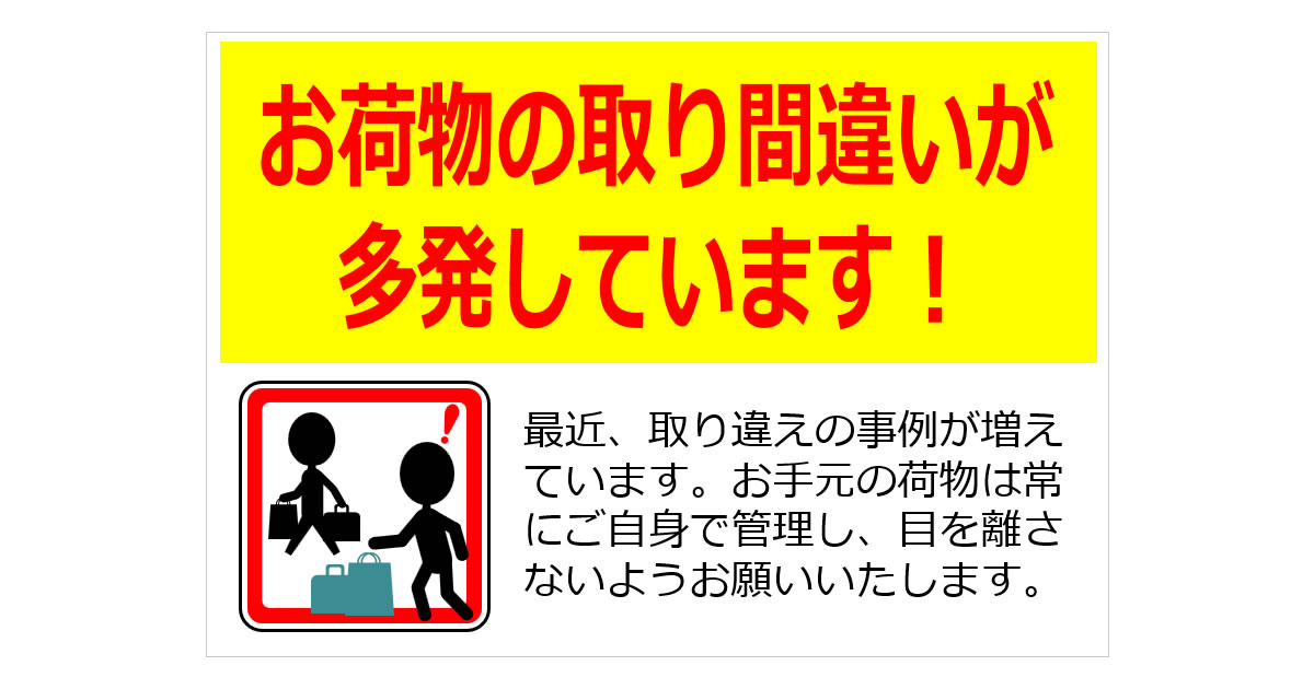 - ホテルや旅館のロビーに貼り、チェックイン時に荷物確認を促す。