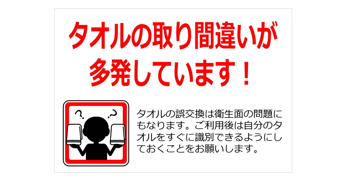 - 温泉や銭湯の脱衣所で同型靴の取り違え防止を案内する。