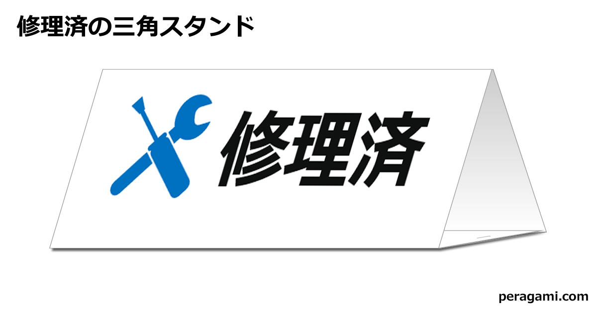 修理済の三角スタンド印刷サンプル(A4サイズ縦向き)