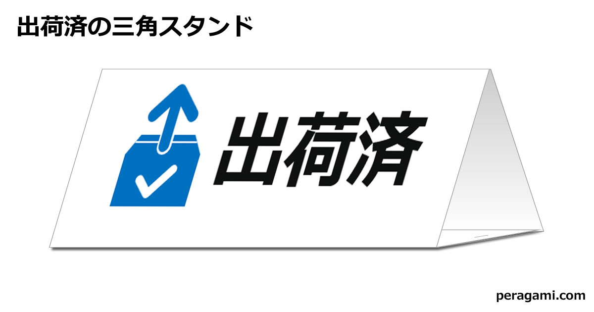 出荷済の三角スタンドです。PDF版とパワーポイント版を提供しております。そのままでも、文字を編集してでもご利用いただけます。