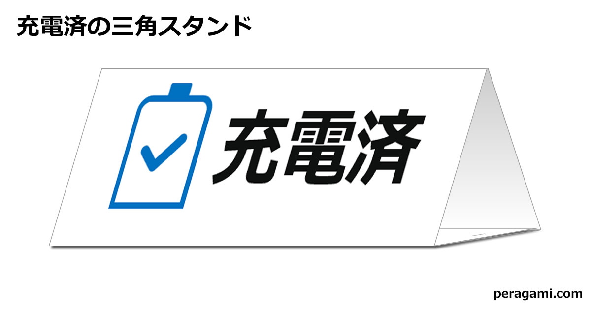 充電済の三角スタンド印刷サンプル(A4サイズ縦向き)