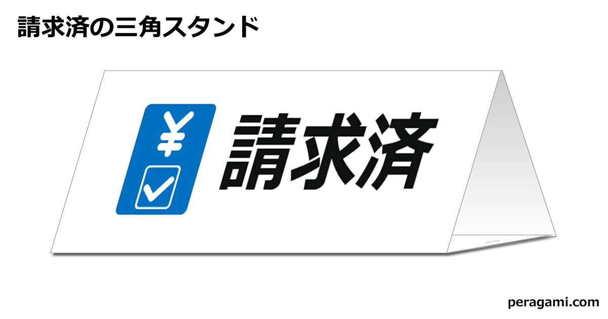 請求済の三角スタンドです。PDF版とパワーポイント版を提供しております。そのままでも、文字を編集してでもご利用いただけます。