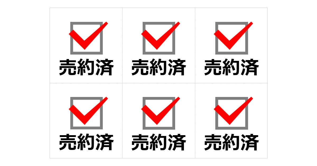 商品や物件が既に契約・販売済みであることを示すために貼り、二重販売や誤案内を防ぐ用途に使えます。