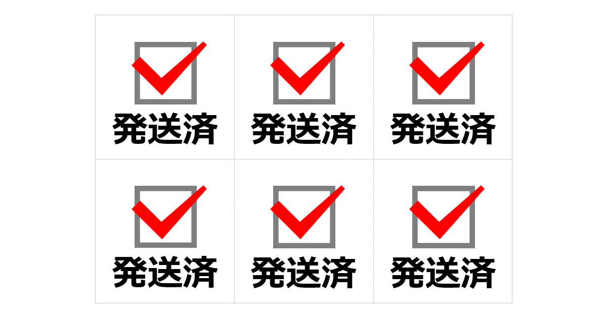 - 梱包伝票や出荷棚に貼って発送処理が完了したことを示す。