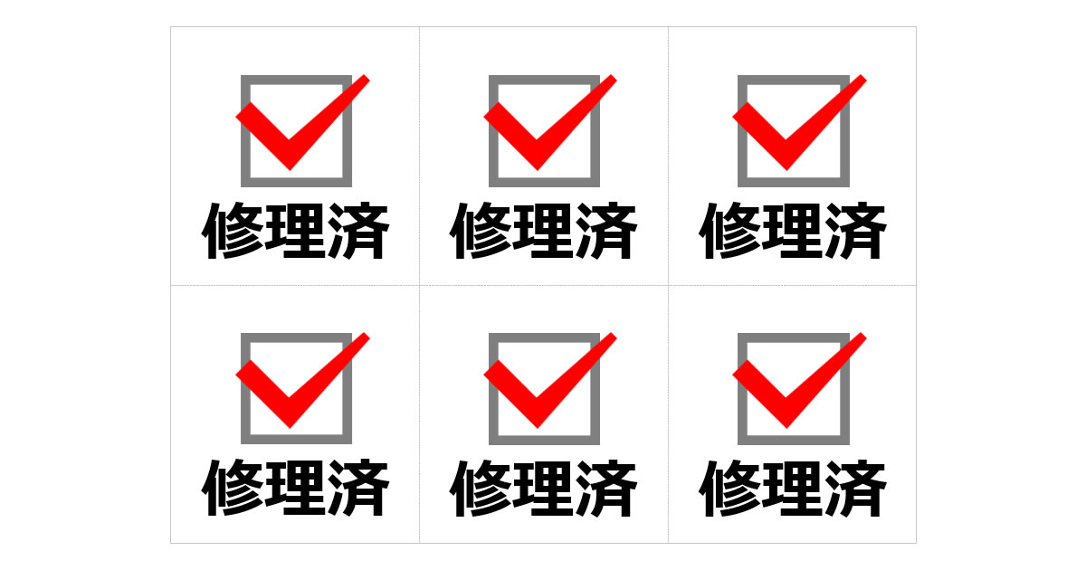 故障品や不具合箇所の修理が完了したことを示し、返却準備や品質確認のための表示に利用します。