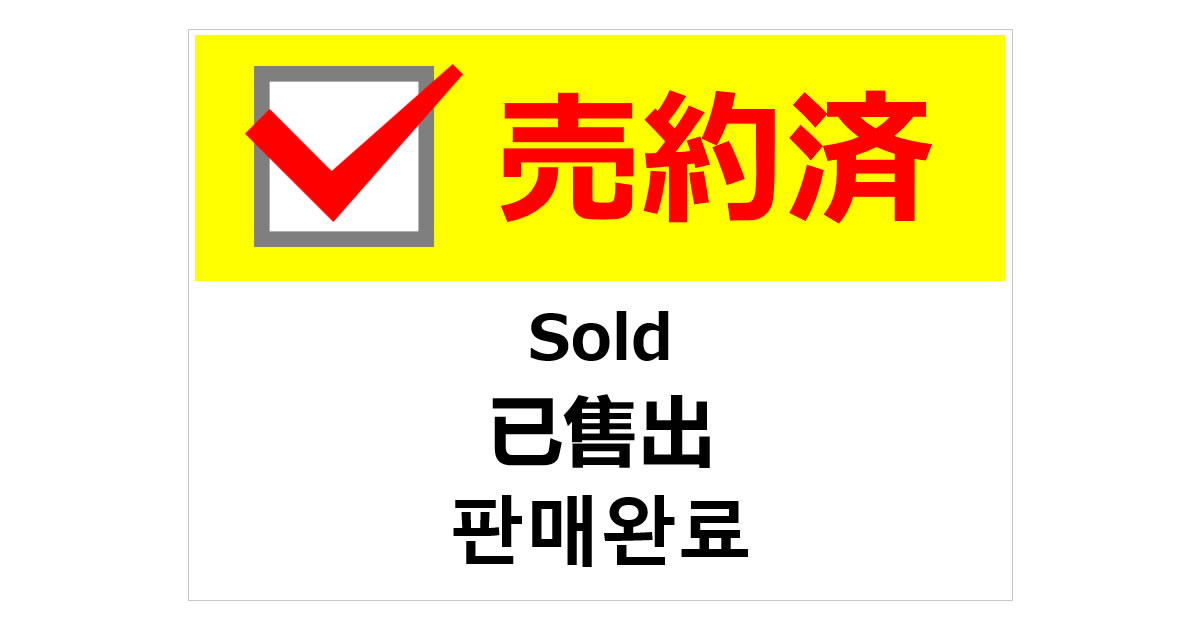 売約済(四か国語表記)の貼り紙