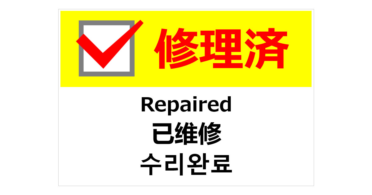修理済(四か国語表記)の貼り紙ダウンロード