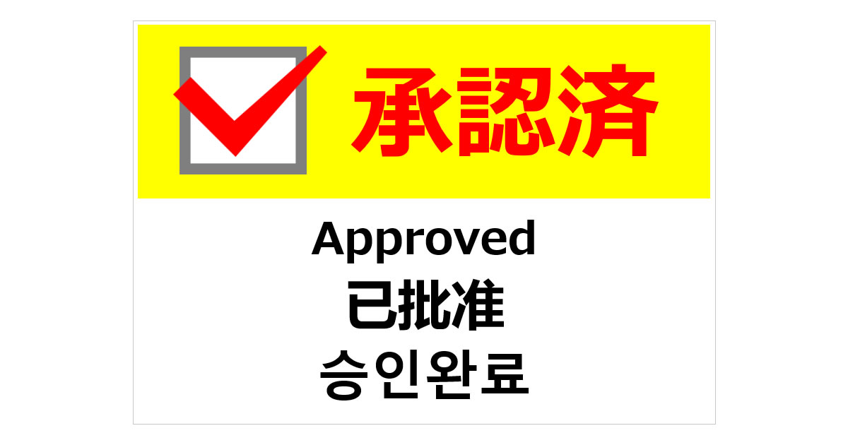 承認済の表示は手続きが正式に通ったことを示す公的な印象を与えます。書類や申請の区切りを明確にするための表示です。