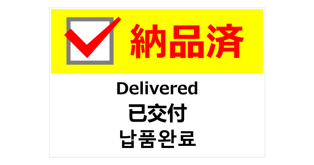 納品済(四か国語表記)の貼り紙ダウンロード