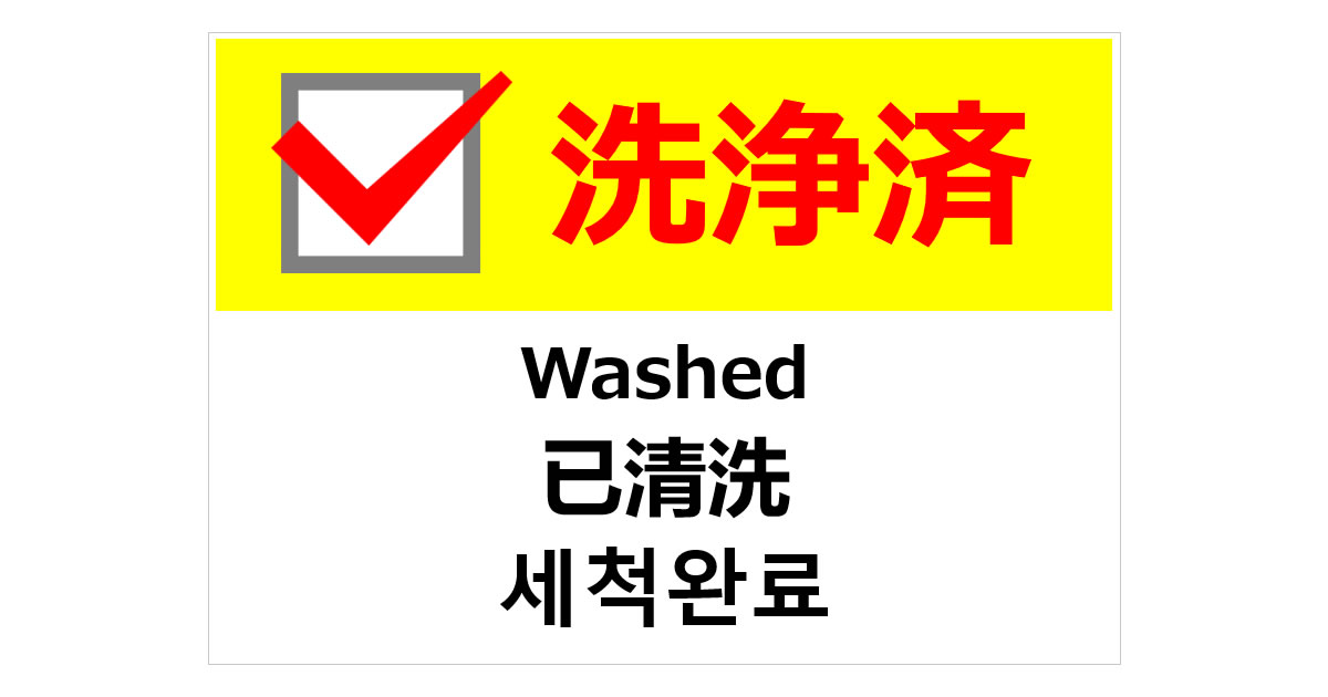 洗浄済(四か国語表記)の貼り紙ダウンロード